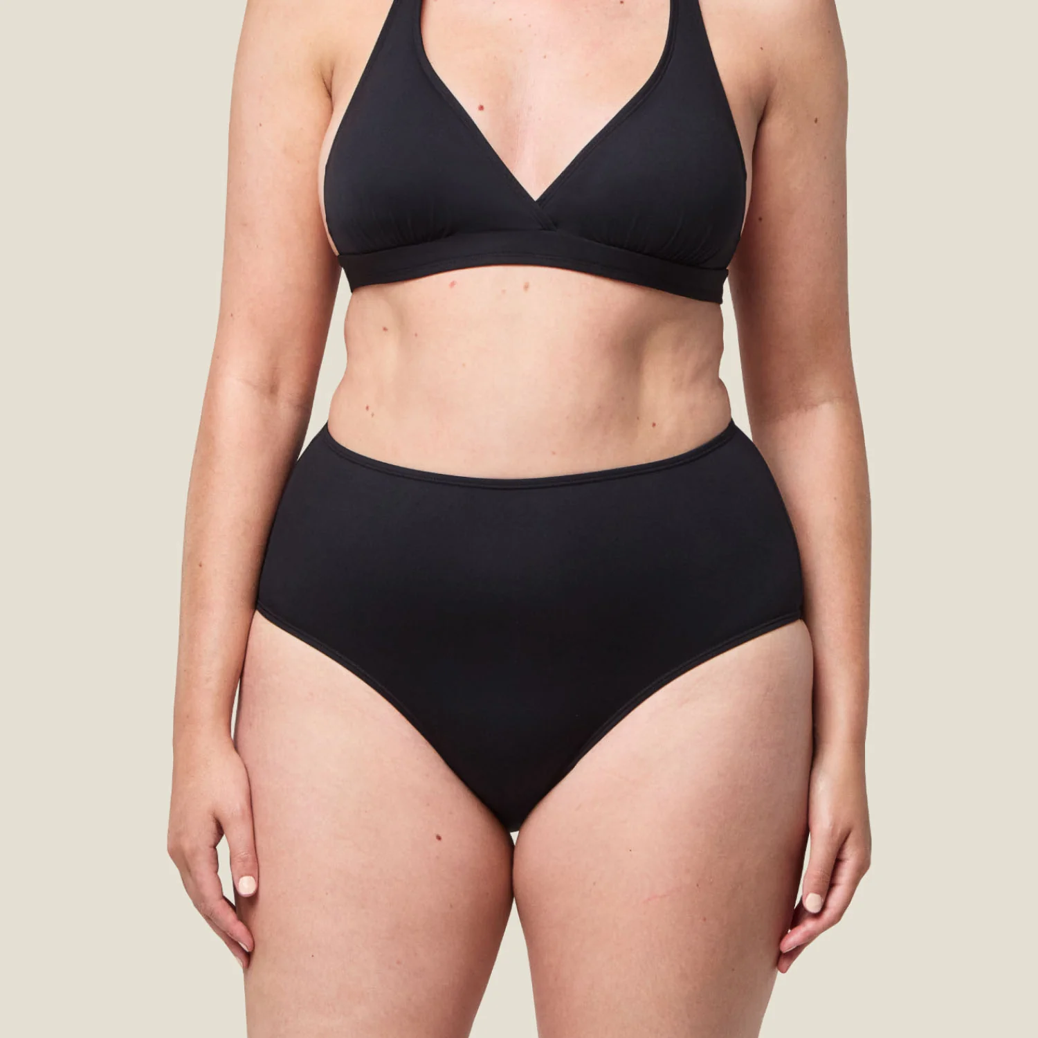 Light absorbency holds up to 10ml of flow – around 2 tampons or 1 pad’s worth. The absorbent gusset is discreetly built into the high-waist style, while the outer fabric is waterproof, chlorine-resistant and UV-protective.