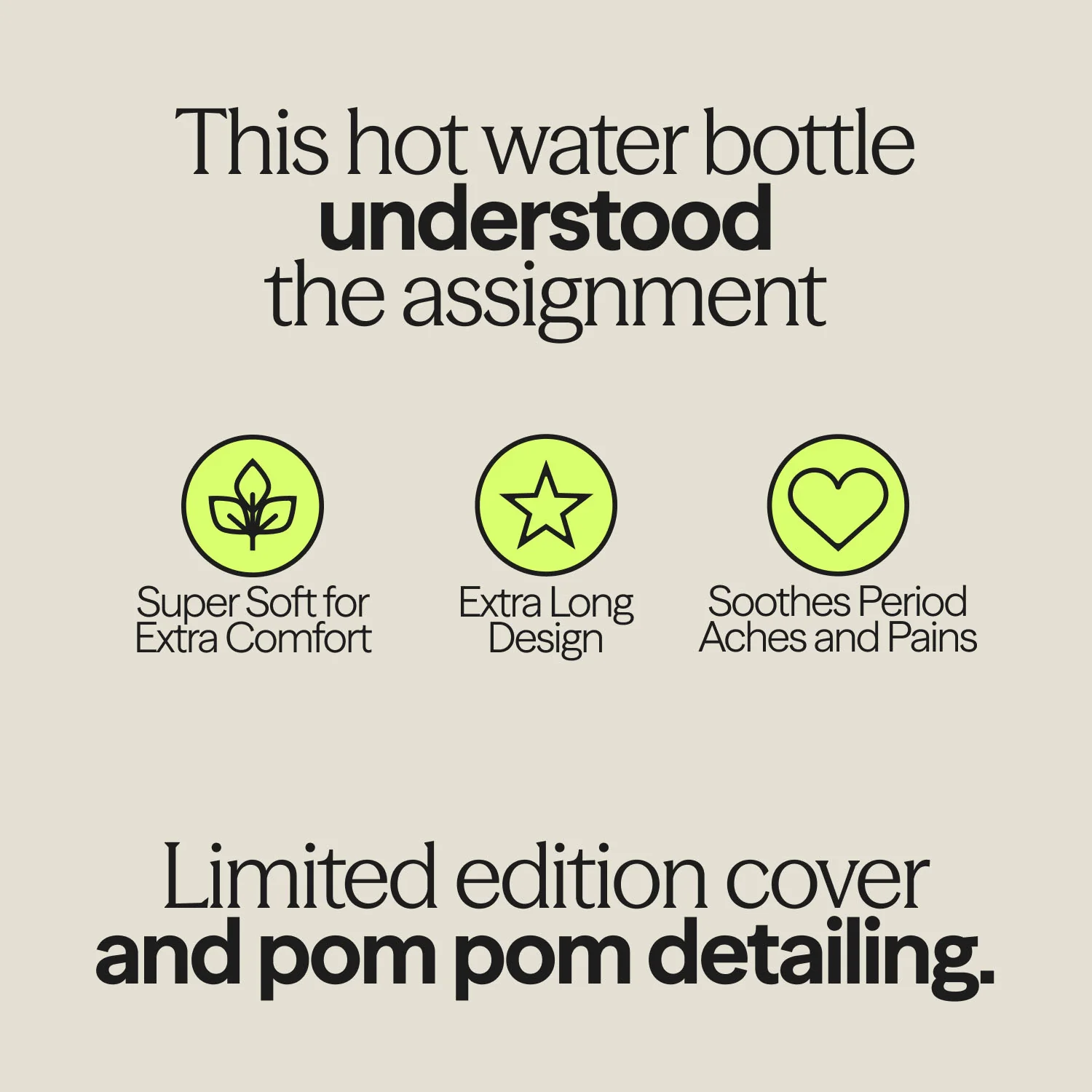 The perfect Christmas gift, this extra long hot water bottle comes with a limited edition cosy cover and pom pom detailing for a fun, festive aesthetic.